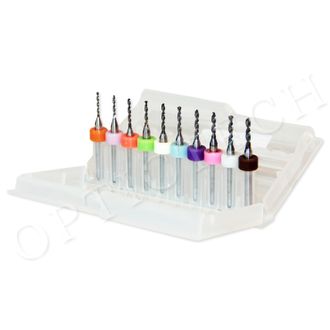 Набор из 10 сверл различных диаметров с пластиковым кольцом, предназначен для сверления PC линз, различных видов пластмасс, мягких металлов и других материалов.